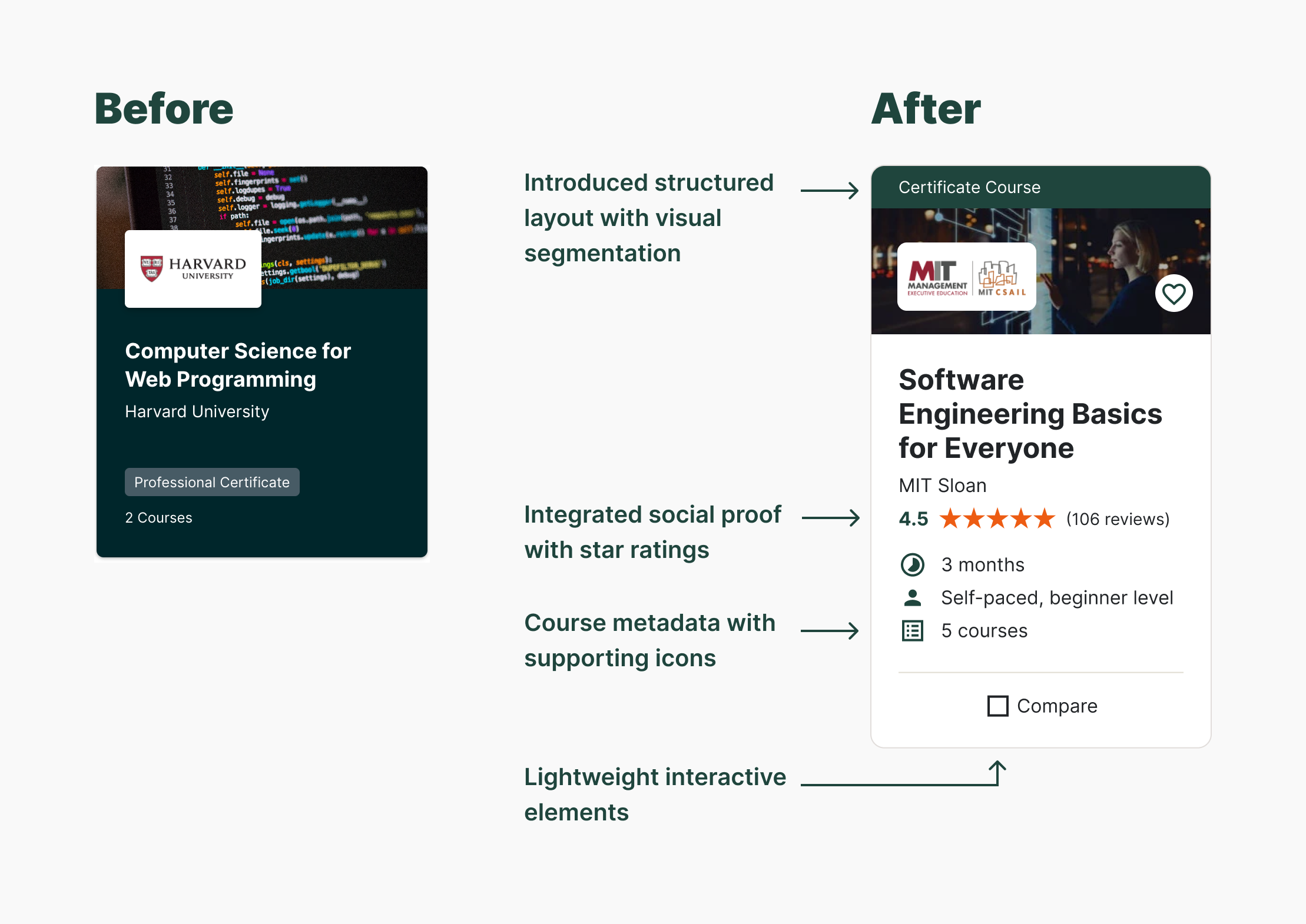 These changes made the cards feel more modern, more useful, and more aligned with how users browse and evaluate courses.